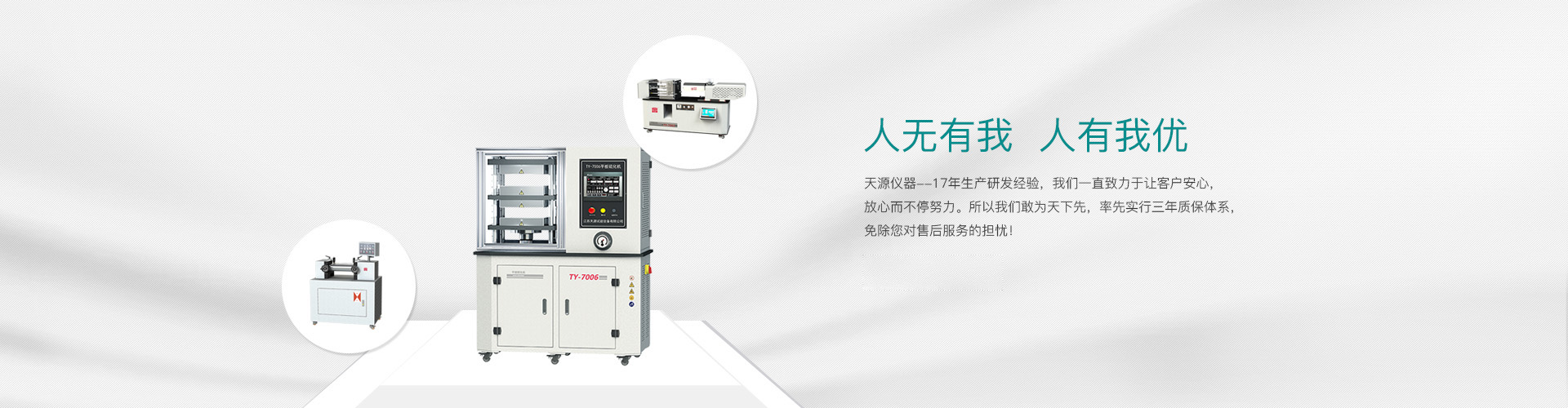 “江蘇天源”經過15年的錘煉,現有員工50余人,公司設有電子式萬能試驗機、塑料物理檢測儀器、橡膠物理檢測儀器和高分子材料制樣設備4條產品線,為用戶提供全系列的電子萬能試驗機(10N-600Kn)、全系列高分子材料檢測儀器及高分子材料工藝應用培訓與研發。